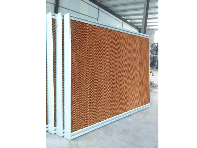 該系統由濕簾、供回水系統、風機和附件、電動控制系統組成。利用水的蒸發通過熱濕交換的原理,給空氣加濕和降溫。系統通過循環供水將水送到濕簾頂部,均勻淋濕整個濕簾墻,從而將濕簾的表面濕潤。當空氣通過潮濕的濕簾時,水與空氣充分接觸,使空氣的溫度降低,達到降溫的目的。