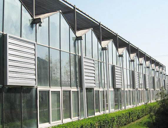 文絡溫室的骨架采用鋼架和鋁合金構成,透明覆蓋材料為4mm厚平板玻璃。溫室屋頂形狀和類型主要有多脊連棟型和單脊連棟型兩種。