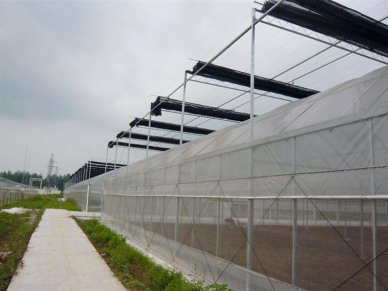 4、采用吸濕性良好的保溫幕材料。透濕和吸濕性良好的保溫幕材料,如無紡布能夠阻止棚內表面結露,并可防止露水落到植株上,從而降低連棟溫室空氣濕度。